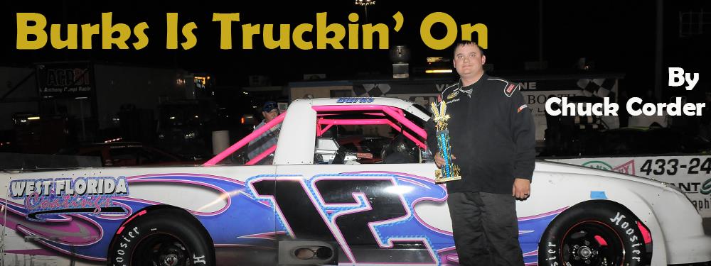 Burks started racing at the famed half-mile asphalt oval when he was 14, coming up in the Lloyd’s Glass Pure Stocks class before climbing to The Dock on Pensacola Beach Sportsmen division and finally elevating to Pro Trucks in 2015.