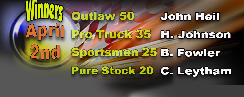 Texan John Heil Wins Outlaw 50; Hunter Johnson from Georgia Takes Pro Truck 35 ; Brannon Fowler in Sportsmen 25; Cameron Leytham Wins Pure Stocks