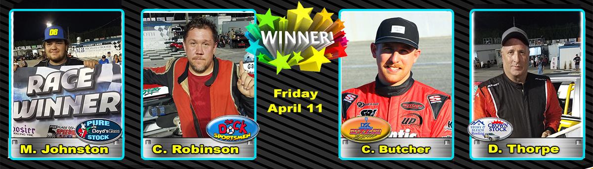 He led every lap of the season-opening Lloyd’s Glass Pure Stocks 20-lap feature.