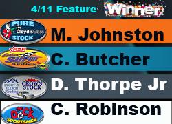 B.J. Leytham finished second and Jim Pokrant came away with third. The race saw one caution when the McDonald brothers—Daryl and Parker—collided with each other down the back straightaway.