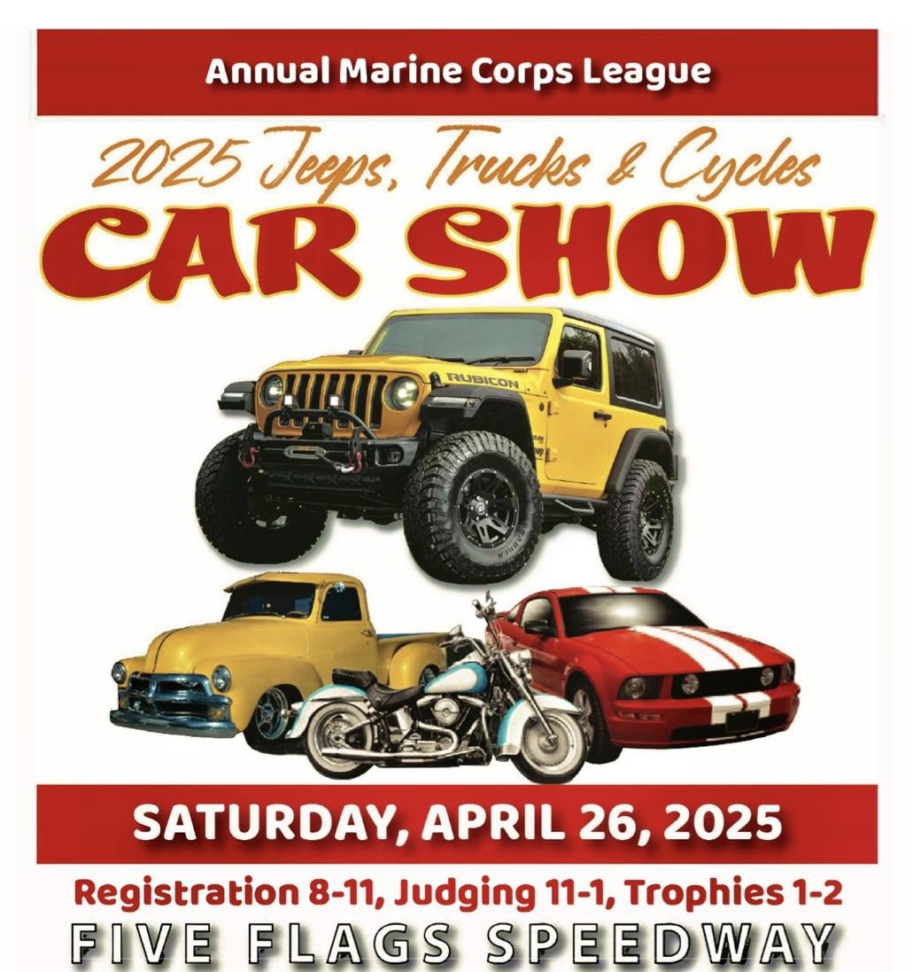Enjoy a free car and Jeep show Saturday in the parking lot, presented by the Marine Corps League,